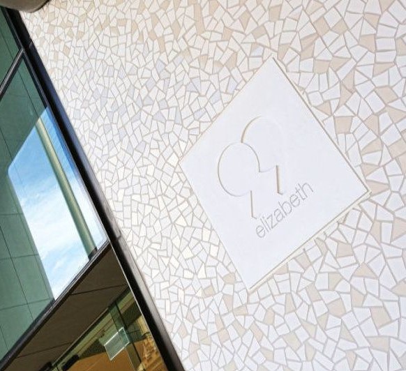 Trencadis Porcelánico diferentes colores . Proyecto: COX Architects